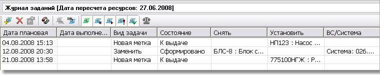 Раздел «Журнал заданий» — предназначен для формирования заданий по обслуживанию ВС: по установке, замене, снятию и переустановке изделий. |