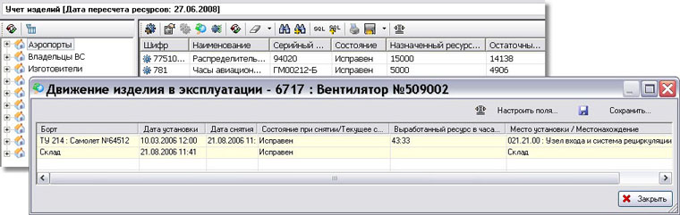 Раздел «Учет изделий» — предназначен для учета сведений об изделиях, устанавливаемых на ВС. |